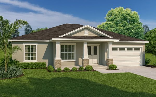 The 4-bedroom, 3-bath Gainesville is part of our Country Estates Collection, offering expanded living space, an oversized central great room, and a spacious kitchen with island seating and walk-in pantry. The private owner’s suite includes a spa-style bath, large walk-in closet, and direct access to the extended rear lanai. A covered front porch and full two-car garage complete this estate-level design, ideal for larger homesites and buyers seeking elevated space and comfort.